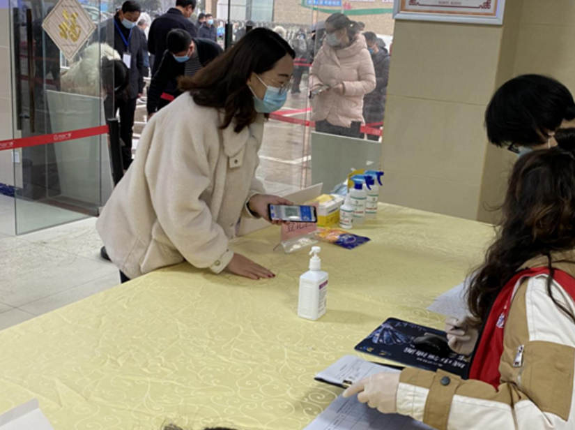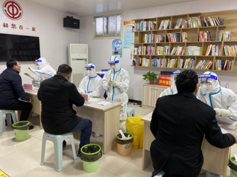 登記環節:待檢人員在工作人員的引導下,掃描“健康碼+行程碼”,體溫測量、做好身份信息登記后,憑工作人員提供的核酸檢測試劑進入采樣區,按照規范進行咽拭子采樣。