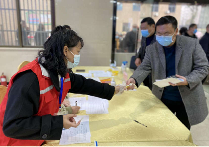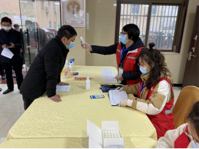 1月27日下午,泰興市濟川街道躍進社區門口,幾十號人排起了長隊。