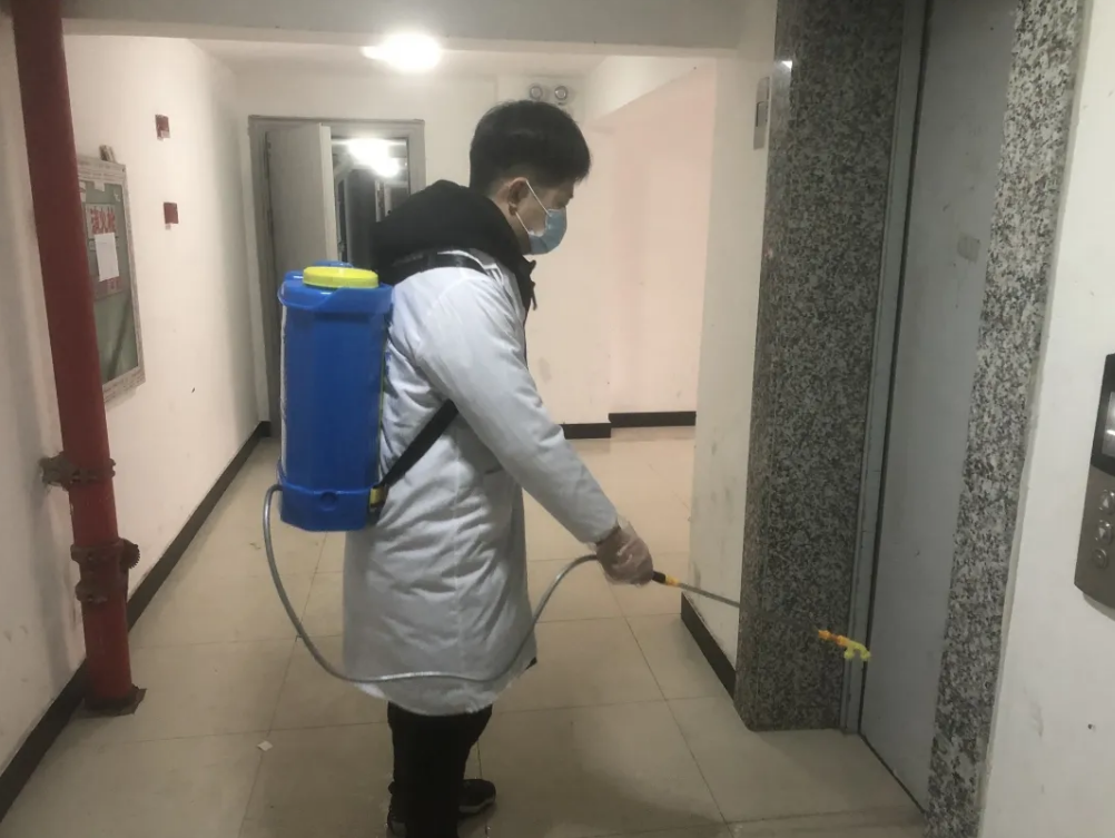 ●消殺組對該病例所住房屋進行全覆蓋消殺,對樓棟內全部空間尤其是電梯、公共樓道、把手進行不留死角的消毒;