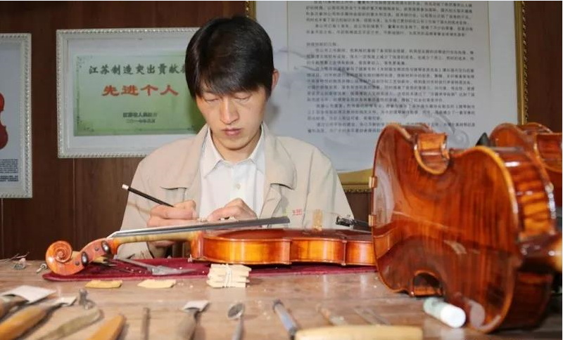 “小提琴是純手工制作,考驗著個人的耐心和細心。一把琴的優與劣主要看細節處理和調音是否到位。”作為土生土長的黃橋人,徐小峰對小提琴可謂了然于心。從當初的消耗幾十個部件做出一把琴,到如今的每一個尺寸都能精確到毫米,“坐得了冷板凳”的徐小峰靠著一份堅持,先后獲得泰州市總工會“金牌工人”稱號和“江蘇制造工匠”稱號等榮譽。扎根小提琴制作近二十載,相比于“大師”“首席”稱號,徐小峰更覺得自己只是個手藝人,而一個手藝人的使命便是打磨和傳承技藝,既不標新立異,也不墨守成規,在繼承中發展。如今,他也在思考如何將手藝傳承給更多的人,讓黃橋提琴文化的影響不斷擴大。