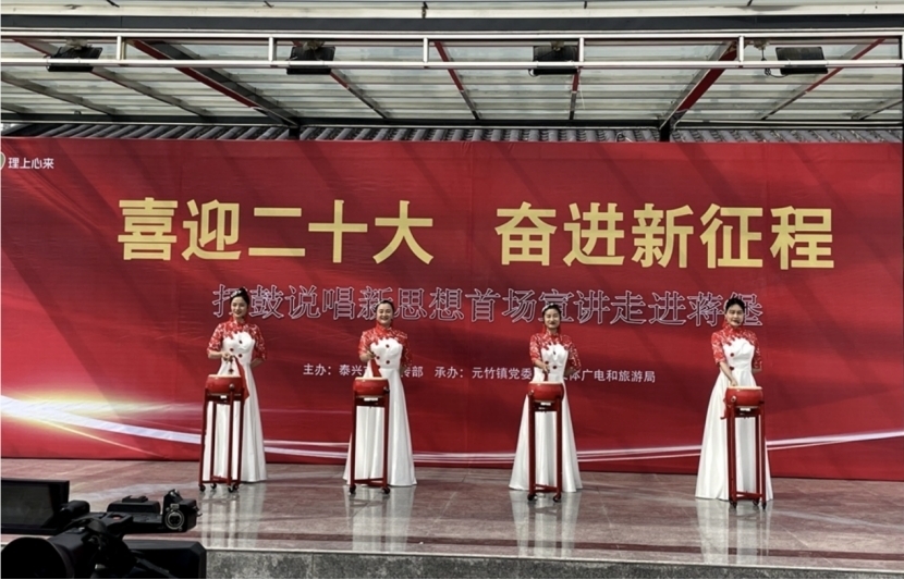 2022年3月27日,泰興市“泰有愛”志愿服務總隊開展以“喜迎二十大奮進新征程”為主題的“打鼓說唱新思想”宣講走進泰興元竹鎮蔣堡村,乘“云”而上,給黨的創新理論宣講插上傳播“翅膀”,贏得各界好評。