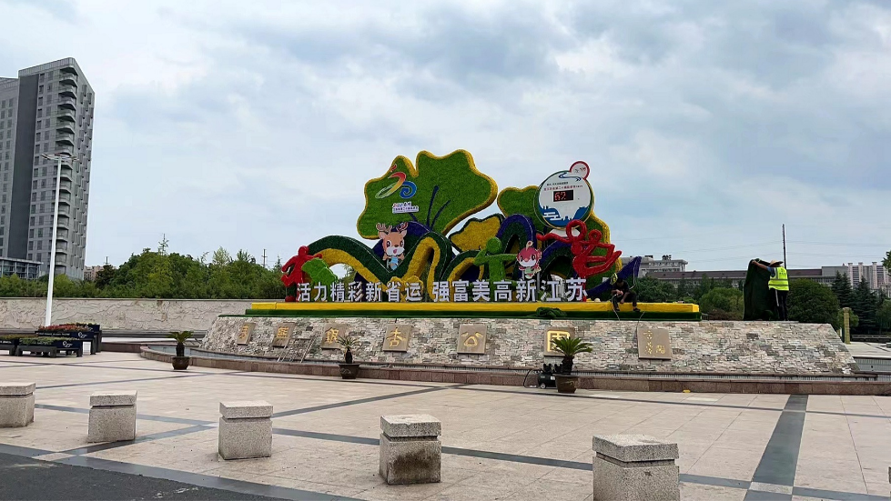 夜幕下的泰興銀杏公園,流光溢彩,以江蘇省第二十屆運(yùn)動(dòng)會(huì)為主題的大型綠雕讓人耳目一新。生機(jī)盎然的綠雕,由銀杏葉、省運(yùn)會(huì)吉祥物泰寶、鳳娃等元素組成,配合燈帶勾勒線條,輔以多色彩的搭配,扮靚了城市顏值,引來(lái)市民拍照打卡。
