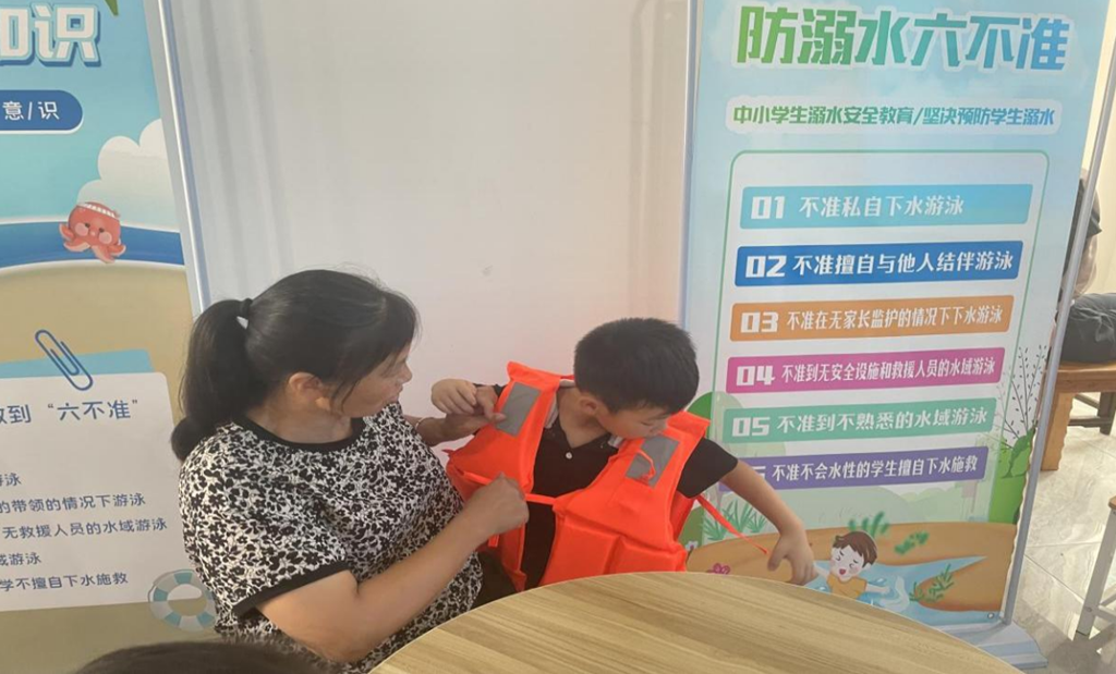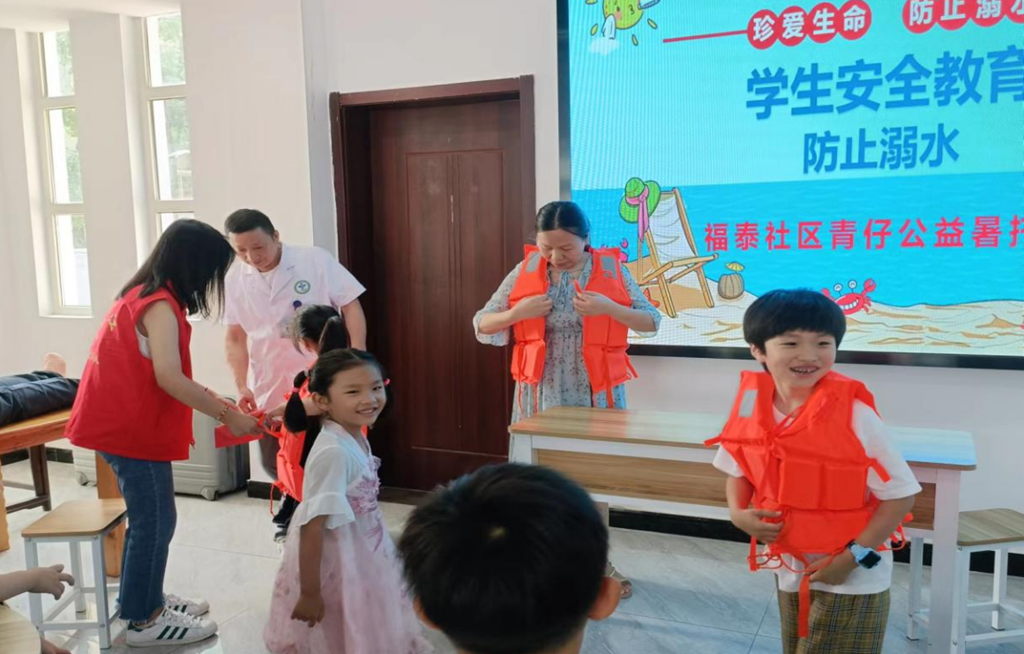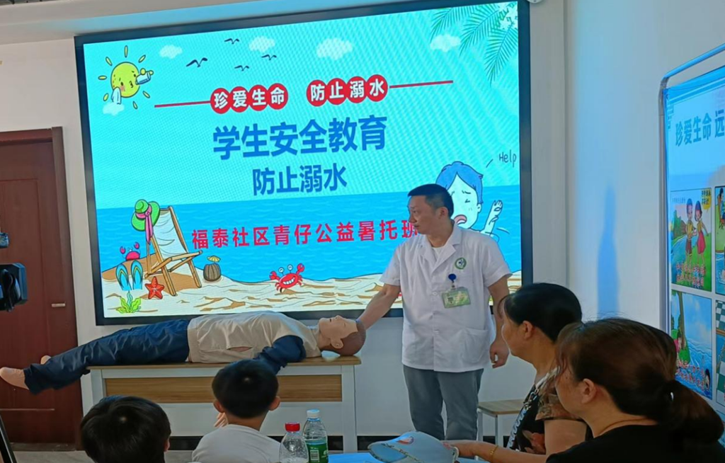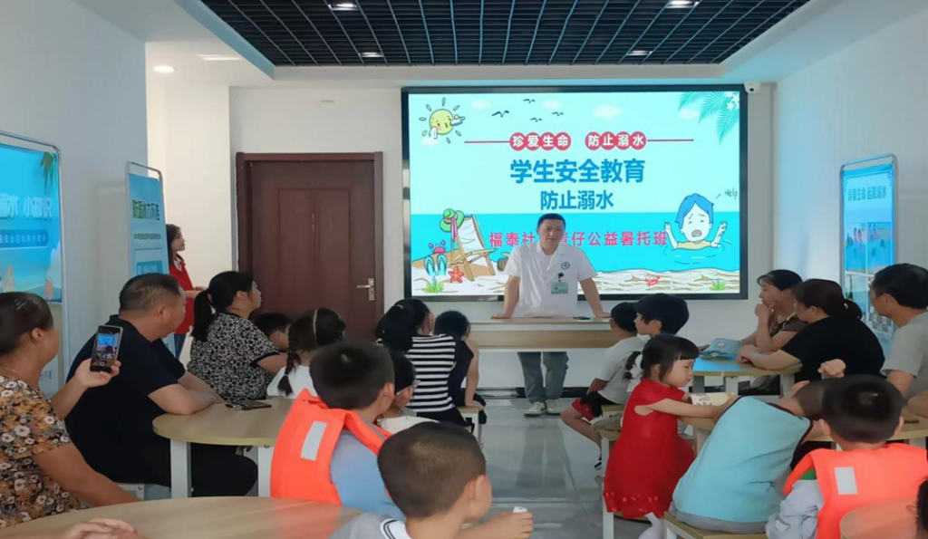 每逢暑假,最令家長和老師關切的就是防溺水。濱江鎮周邊河流較多,兒童夏季溺水隱患較大,在濱江鎮團委的精心組織下,一場防溺水安全課實景教學正在福泰社區暑托班里上演。