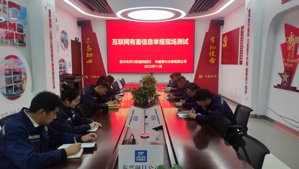 開展微測試,讓有害信息舉報入腦入心。在中建泰興水務有限公司,濟川街道向陽村志愿者化身“網絡有害信息舉報”宣傳員,分享了典型案例、觀看了有害信息舉報微視頻,并現場完成了學習測試,讓有害信息舉報工作的相關知識入腦入心。 |