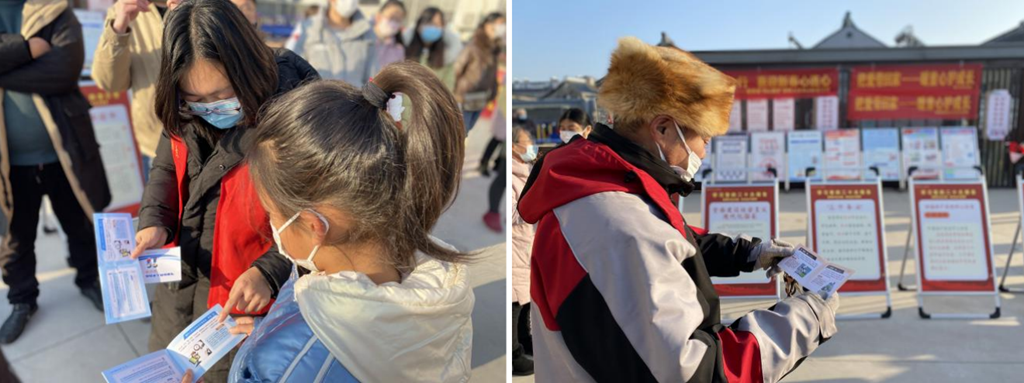 另一邊,志愿者在為群眾講解了互聯網違法和不良信息的危害以及散布謠言需要承擔的法律責任,詳細講解網絡舉報的途徑方式,并對春節期間高發的謠言進行預防式辟謠。同時號召大家關注“泰州市互聯網違法有害不良信息舉報中心”小程序,共同抵制網絡謠言、主動參與網絡舉報,營造“網絡安全為人民,網絡安全靠人民”的良好社會氛圍。