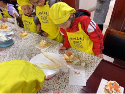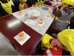 活動開始前,現場志愿者為孩子們分發烘焙帽與圍裙,有序幫助孩子們清潔雙手。帶上裝備的孩子們瞬間變身小小烘焙師,興奮與喜悅溢于言表,一個個都迫不及待地想要動手制作屬于自己的小蛋糕。 準備工作做好后,烘焙課程就正式開始啦。首先,老師為小朋友們介紹了做蛋糕用的食材,帶小朋友們認識了蛋糕胚、奶油、果醬……介紹完食材后老師為小朋友們演示了做蛋糕的過程,擠奶油、放果醬、裝飾蛋糕……接下來就是小朋友們的動手環節:孩子們小心翼翼地在第一層蛋糕胚上擠上奶油、放上水果與果醬,一個個蛋糕雛形很快就形成了;加上第二層蛋糕胚后,孩子們自由創作,用奶油畫出了各種各樣的圖案;最后再放上裝飾點綴,小朋友們便擁有了屬于他們自己的小蛋糕。
