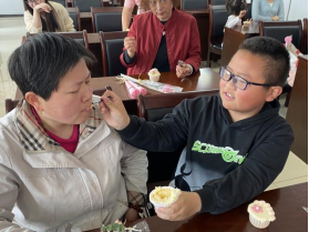 接下來是給媽媽獻花環節,孩子們向媽媽送上母親節祝福并說出自己的心里話,媽媽們都非常感動。同時我們社工站也為孩子和家長準備了節日蛋糕一起享用,孩子們不約而同將第一口蛋糕都喂給了媽媽,每個人的臉上都洋溢著溫馨、幸福的微笑。活動結束后,家長們紛紛表示:“活動促進了親子之間的互動,拉近了親子距離,非常有意義。”