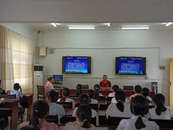 紅色話劇追尋先賢足跡。“星光不問(wèn)趕路人,歷史屬于奮斗者!你們對(duì)曾爺爺?shù)氖论E了解多少呢?”一場(chǎng)生動(dòng)的《一封泛黃的感謝信——感恩曾濤爺爺》紅色話劇讓孩子們沉浸其中。廣陵鎮(zhèn)組織留守兒童集中觀看紅色話劇,跟隨歷史的步伐,回憶風(fēng)雨飄搖的年代中著名外交活動(dòng)家曾濤獻(xiàn)身革命和中國(guó)外交事業(yè)、變賣家中珍藏的書畫回報(bào)家鄉(xiāng)教育的事跡,孩子們?cè)谟^劇中傳承弘揚(yáng)紅色文化和愛(ài)國(guó)精神,鼓勵(lì)他們無(wú)論人生遇到什么困難,都要不畏困難,以夢(mèng)想為帆,勇毅前行。 法伴成長(zhǎng)護(hù)航七彩青春。結(jié)合6月未成年人保護(hù)月,為更好地保護(hù)未成年人的身心健康,廣陵鎮(zhèn)司法所在寧界中學(xué)開展“點(diǎn)餐式”精準(zhǔn)化普法活動(dòng),幫助青春期的孩子們扣好人生的“法治紐扣”,讓“法護(hù)未來(lái)”落深落實(shí)。“我們?cè)诜e極推動(dòng)法治情景劇、微電影、法治歌曲進(jìn)校園,讓學(xué)生在‘沉浸式’的體驗(yàn)中接受法治教育,感受法治魅力,推動(dòng)法治宣傳深入人心。”廣陵鎮(zhèn)司法所工作人員宋曉奇說(shuō)道。