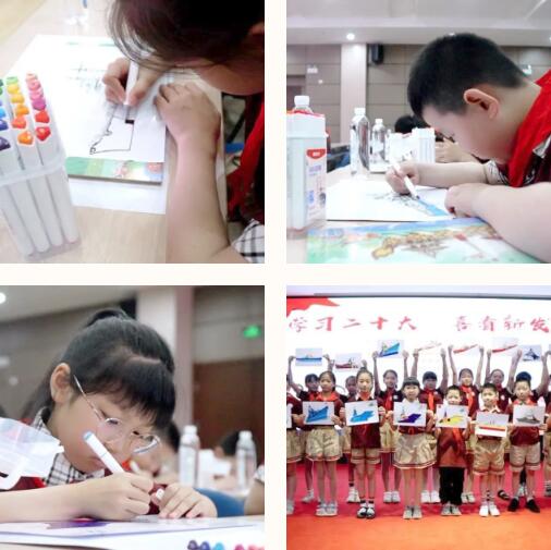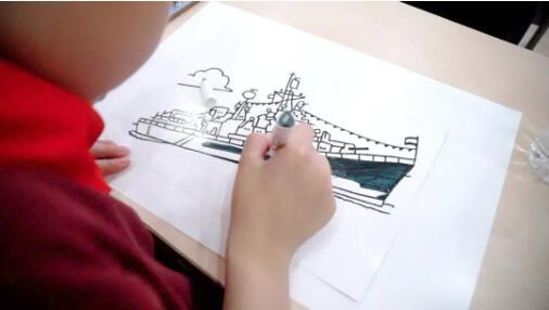 在聽取了企業(yè)介紹后,少先隊員們共同參與“手繪大船”活動,用五顏六色的水彩,共同繪制企業(yè)旗艦船只畫報。通過描繪心中的船只,寄予對新時代、新科技的展望,也讓夢想的航船首次落到了紙面上。在少先隊員的共同努力下,一艘艘滿懷創(chuàng)意、想象力的船只躍然紙上;顒釉谏傧汝爢T們的笑容里取得圓滿成功。