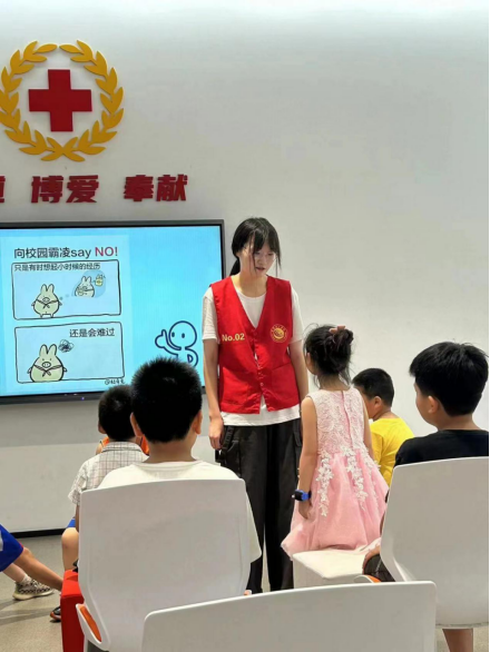 活動現場,志愿者通過短視頻、PPT、知識問答、現場問答等形式,以案釋法、以法論事,帶領孩子們加深了對校園霸凌的基本認識,并就校園霸凌產生的原因、危害、表現形式和特征進行講解,增強孩子們預防和辨別校園欺凌的能力。