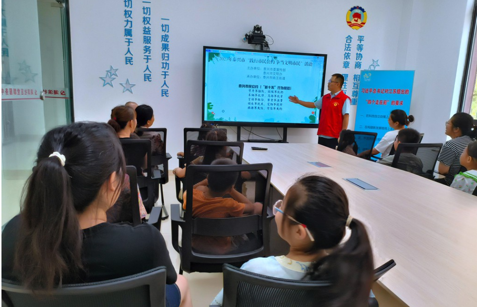 活動現場,志愿講解員從遵守生活秩序、規范文明禮儀、參與衛生環保等方面為市民解讀《泰興市民公約》具體含義,號召在座市民,尤其是未成年人將公約內化于心,外化于行。同時也引導大家自覺遵守社會公德,養成健康文明的行為習慣,在學習行為規范中,做文明人、辦文明事,傳播文明新風。