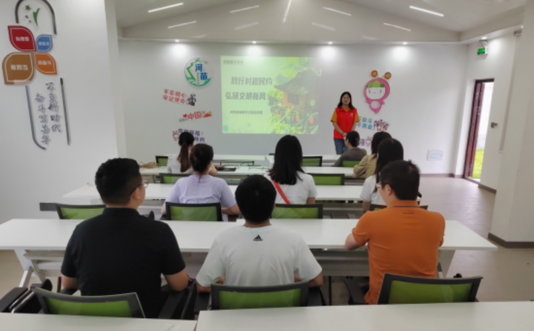 本次活動的宗旨是:有方向的干部培養、有溫度的思想引領、有內涵的理論建設、有作為的科技人才。活動共有10個流程。首先是一番省身,其次是《論道說德》演講、誦經典、聽勵志故事對白、觀“三農人——趙亞夫”事跡短片;8名年輕同志談各自成長歷程、奮斗故事;有獎競答和大合唱《歌唱祖國》;最后是年輕同志暢談本次道德講堂活動的感悟感想。年輕的“畜牧人”們紛紛表示,要進一步加強學習,發揚新時期黃橋決戰精神,不斷加強黨性鍛煉,奮進新征程、建功新時代,努力成為全面推進鄉村振興征程中的服務者、接力者、繼承者。 河失鎮開展“踐行村規民約 弘揚文明新風”活動 2023年9月20日是全國第21個“公民道德宣傳日”,為深入推進移風易俗,進一步宣傳村規民約相關內容,營造文明、和諧的村風,河失鎮在現代農業產業園開展“踐行村規民約 弘揚文明新風”活動。活動中,志愿者用通俗易懂的語言向各村網格員、中心戶長宣講村規民約的具體內容,并帶領他們走進商戶、走進村居發放村規民約宣傳單和倡議書,引導村民破除陳規陋習,樹立文明、健康的生活理念。