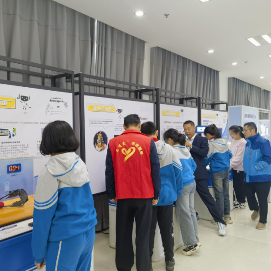 活動現場,志愿者帶領孩子們參觀“去遠方的遠方”“燃冰逐夢”以及“AI超越人類?”三大主題展區,通過展板解讀和現場互動的形式,讓青少年直觀體驗相關科學現象和原理,在互動中感受科技魅力,在實踐中激發科學興趣。