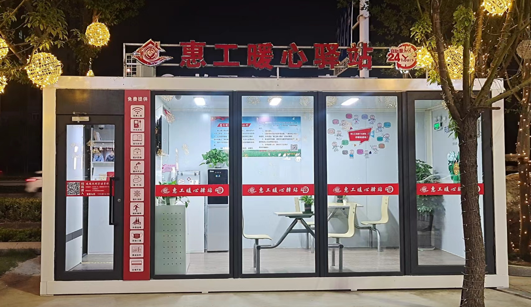 新浦化學人才公寓職工之家位于江蘇省泰興市經濟開發區人才公寓之內。整個小區占地面積5.8萬平方米,建筑面積20.9萬平方米,目前共擁有280套房源,公寓內家具、家電等各項生活設施齊全、拎包入住。同時在一樓共享職工之家還配備了健身房、職工書屋、自習室、工會驛站、職工活動室、乒乓球室、臺球室等設施。溫馨的居住體驗、完善的配套設施,備受廣大職工的歡迎。 近年來,泰興市致力于為職工解決實際問題,落實為職工辦實事、做好事、解難事的一項重要舉措。通過這一舉措,泰興市為廣大職工提供了更加切實、貼心的幫助,讓他們在生活和工作中感受到了更多的關懷和溫暖。同時,這也反映了泰興市政府對職工權益的高度重視和關注。 “這里有空調,有微波爐,冰箱里面還有水,特別方便。”日前,在文江路環衛工作站,環衛工人朱小莉和同事結束第一遍清掃工作后,來到惠工暖心驛站喝水,稍作休息。朱小莉告訴記者,他們每天長時間在露天工作,此前只能在樹蔭底下或者商家店里休息,24小時開放的惠工暖心驛站為他們提供了很大便利。“這里環境舒適、設施齊全,就像一處溫暖的港灣。”朱小莉笑著說。