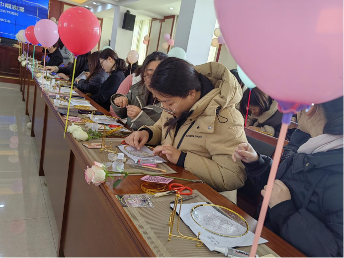 值此春暖花開、萬物復蘇的美好時節,我們迎來了第114個“三八”國際婦女節。為慶祝這一重要節日,古溪鎮婦聯與機關工會于3月8日上午聯合舉辦了一場主題為“傳承非遺工藝,勾勒巾幗浪漫”的慶祝活動。此次活動旨在讓婦女干部們親身感受非物質文化遺產的獨特魅力,提升個人綜合素質,同時展現她們的才華與智慧。 在活動開始前,古溪鎮黨委委員張維維同志發表了熱情洋溢的致辭。她代表黨委向全體婦女同志致以節日的誠摯問候,并對她們在過去一年里在工作崗位上所做出的卓越貢獻給予了高度評價。張維維同志鼓勵廣大婦女干部繼續發揚巾幗不讓須眉的精神,為古溪鎮的高質量發展貢獻更多智慧和力量。 本次活動聚焦絲綢之路上的非物質文化遺產——“掐絲琺瑯”工藝。通過視頻學習和親身體驗相結合的方式,婦女同志們在一彎一繞中勾勒出對景泰藍的傳承,在一涂一抹中表達對掐絲琺瑯畫的熱愛。她們將掐絲帶的記憶傳承百年,再續傳統藝術的美與浪漫。活動現場氣氛熱烈,古溪鎮機關及村(居)的77名婦女同志積極參與其中,共同感受瑰麗的中華文化和非遺的無窮魅力。 |