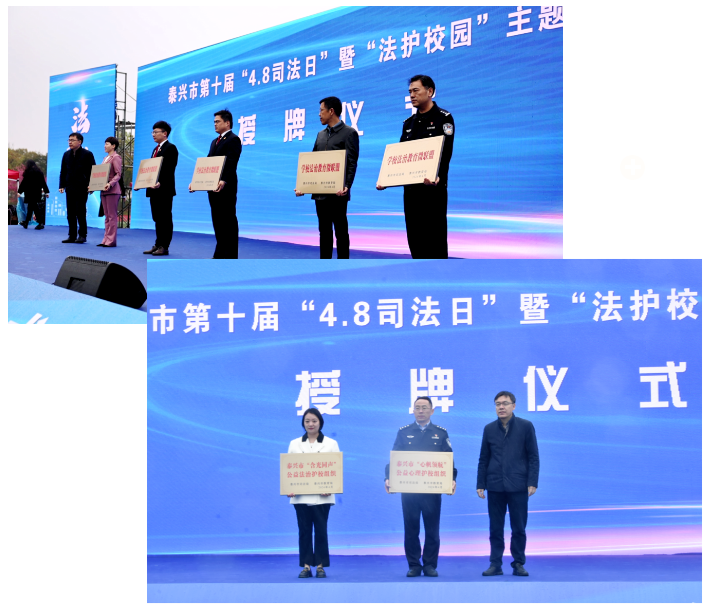 為全面貫徹落實黨的二十大精神,深入學習貫徹習近平法治思想,4月8日,泰興市舉行第十屆“4.8司法日”暨“法護校園”主題活動啟動儀式。 現場為全市分區域成立的5個學校法治教育“微聯盟”和2家公益護校組織授牌,相關普法單位簽訂了“法護校園”承諾。