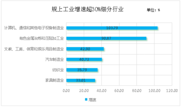規(guī)上工業(yè)企業(yè)用電量合計(jì)17.3億千瓦時(shí),同比增長(zhǎng)7.59%,較上年同期上升9.25個(gè)百分點(diǎn),拉動(dòng)全社會(huì)用電量增長(zhǎng)5.25個(gè)百分點(diǎn)。規(guī)上工業(yè)29個(gè)細(xì)分行業(yè)中,正增長(zhǎng)有22個(gè),增幅超30%有6個(gè)。 |