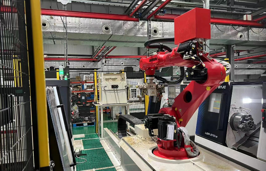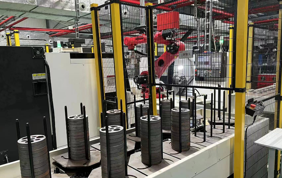 日前,在萬基傳動機器人關節用精密減速器生產線上,一臺臺行星架、擺線輪被傳送到指定位置,紅色機器人手臂敏捷旋轉,精準定位,自動送到機床進行深加工,精確無誤、快速高效。