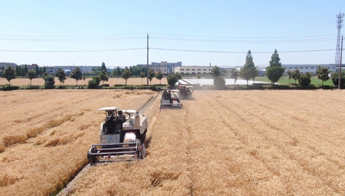 風(fēng)吹麥田千層浪,又到一年收獲時。眼下,泰興市60.34萬畝小麥小麥已進入收獲期。廣大農(nóng)戶利用晴好天氣,全面展開機械化搶收,確保糧食顆粒歸倉。 5月28日上午,在張橋鎮(zhèn)桂芳家庭農(nóng)場,3臺聯(lián)合收割機正在麥田里作業(yè)。大型旋耕拖拉機緊隨其后,邊耕邊埋,讓秸稈盡快翻入土壤,為秸稈高質(zhì)量還田以及水稻高質(zhì)量栽插打好基礎(chǔ)。農(nóng)場的3臺收割機還被編入了“夏收農(nóng)機突擊隊”,承擔(dān)周邊2000多畝小麥的搶收任務(wù)。 俗話說,小麥“九成熟,十成收,十成熟,一成丟”,可見收割時間需要精準(zhǔn)把握。張橋鎮(zhèn)今年在田小麥面積超過36000畝,按照先后成熟情況,提前組織農(nóng)技人員深入田間地頭,指導(dǎo)農(nóng)民做好收獲期田間管理工作。全鎮(zhèn)共協(xié)調(diào)安排了52臺大型聯(lián)合收割機、25套烘干設(shè)備。 根據(jù)最新的農(nóng)情調(diào)度顯示,目前,泰興市小麥大部分已經(jīng)成熟,大規(guī)模機收已陸續(xù)開展。虹橋、濱江、張橋等西部鄉(xiāng)鎮(zhèn),稻茬小麥全面開鐮收割。截至目前,全市小麥?zhǔn)崭蠲娣e約0.86萬畝,占小麥面積1.42%。農(nóng)業(yè)農(nóng)村部門提醒,要密切關(guān)注天氣情況,及時搶收。收割期若遇持續(xù)降雨,易發(fā)生小麥穗發(fā)芽,不利于小麥脫粒、晾曬和儲存,要視天氣情況提早搶收,做到成熟一片收割一片;同時全面開啟糧食烘干及倉儲設(shè)備,加大收儲力度,以防麥穗發(fā)芽或霉變影響品質(zhì)。 |