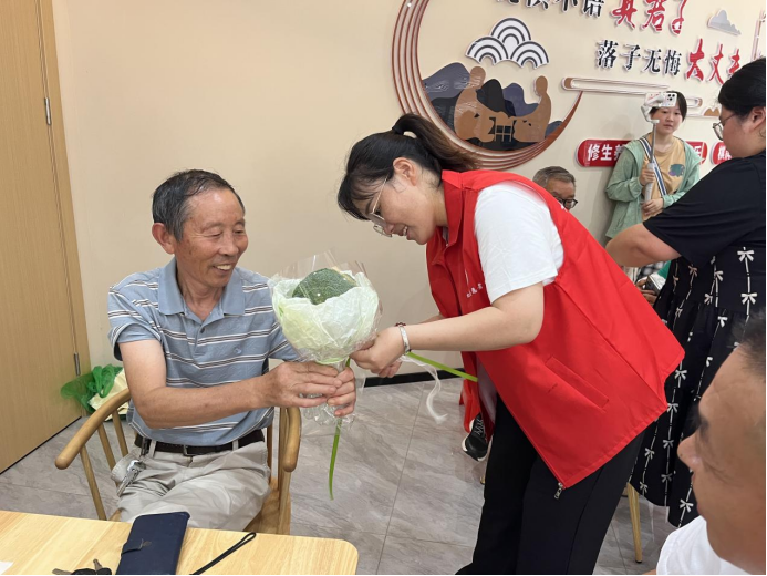 鵲橋架南北,佳期又一年。為弘揚中華民族敬老、愛老、助老的傳統(tǒng)美德,虹德社區(qū)聯(lián)合工青婦力量組織黨員者愿者舉辦“銀發(fā)相守 愛在七夕”主題活動,特邀請15對60歲以上老年夫妻歡聚一堂,共同慶祝這最浪漫的傳統(tǒng)節(jié)日。 走進(jìn)虹德社區(qū)一老一小關(guān)愛服務(wù)中心的老年活動室,現(xiàn)場溫馨融洽、笑語不斷,巾幗志愿者將準(zhǔn)備好的西蘭花、彩帶、剪刀等材料分發(fā)給大家,從材料剪裁以及造型搭配方面?zhèn)魇诎b技巧。“我們這次特意選用西蘭花來包裝成花束,讓轄區(qū)老人體會煙火人間的平凡浪漫,讓愛意在柴米油鹽中永存,讓奶奶的碎碎念念陪伴爺爺?shù)臍q歲年年。”志愿者小金說。 鮮花為媒,綠葉為信。在完成了西蘭花花束后,每對夫婦來到打卡處拍下幸福合影,爺爺將鮮花送給老伴,表達(dá)自己最深情的愛與祝福。“結(jié)婚這么多年,還從來沒收過花,特別感謝你們的用心,讓我們感受到從未有過的浪漫!”“從來沒想過,這輩子還會趕一次‘時髦’,過了一次難忘的七夕節(jié)……”此次活動贏得了轄區(qū)老人的一致好評。 陪伴是最長情的告白,相守是最真實的幸福。浪漫不只是年輕人的事,本次活動不僅展示了他們風(fēng)風(fēng)雨雨幾十年相濡以沫、攜手相伴的人生風(fēng)采,同時也營造出虹德社區(qū)關(guān)愛老人、夫妻恩愛、家庭和睦的良好氛圍。 |