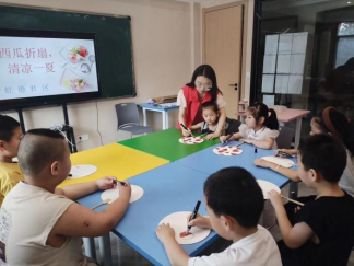 立秋,作為我國(guó)傳統(tǒng)二十四節(jié)氣之一,代表著季節(jié)的更替和收獲的開(kāi)始。為傳承和弘揚(yáng)傳統(tǒng)文化,迎接立秋的到來(lái),虹橋鎮(zhèn)虹德社區(qū)青仔公益暑托班開(kāi)展了“西瓜折扇、清涼一夏”手工DIY活動(dòng)。 活動(dòng)伊始,老師帶領(lǐng)大家了解西瓜。先從西瓜的外形入手,讓小朋友們認(rèn)識(shí)西瓜,并分步驟教授孩子們畫(huà)西瓜團(tuán)扇。小朋友們先用紅色顏料涂抹出西瓜瓤的部分,一筆一劃都充滿了熱情,仿佛要讓這西瓜看起來(lái)更加甜美多汁。接著,綠色顏料為扇面勾勒出西瓜皮的輪廓,那專注的神情仿佛在精心雕琢一件藝術(shù)品。最后,孩子們用黑色顏料點(diǎn)上西瓜籽,一顆顆小巧而生動(dòng),讓整個(gè)西瓜團(tuán)扇更加逼真。當(dāng)一把把栩栩如生的西瓜團(tuán)扇完成時(shí),孩子們臉上洋溢著自豪和滿足的笑容。這些西瓜團(tuán)扇不僅為孩子們帶來(lái)了絲絲涼意,更成為了他們親手創(chuàng)造的藝術(shù)成果。 此次立秋系列活動(dòng),不僅讓孩子們在動(dòng)手實(shí)踐中感受到傳統(tǒng)文化的魅力,也為立秋營(yíng)造了濃厚的節(jié)日氛圍。接下來(lái),虹德社區(qū)將繼續(xù)致力于推動(dòng)傳統(tǒng)文化的傳承與發(fā)展,為大家?guī)?lái)更多有意義的活動(dòng)。
