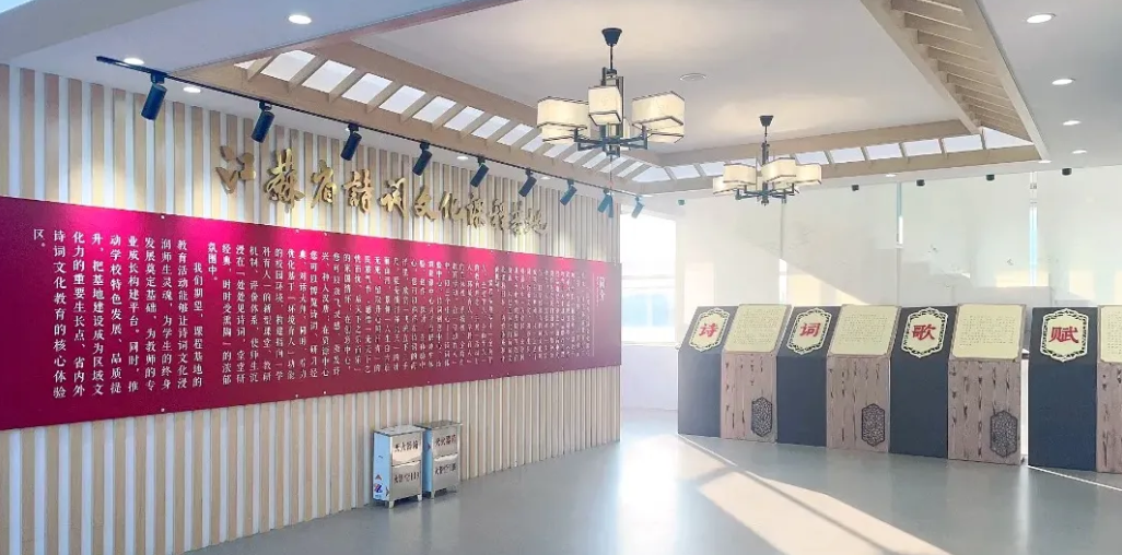 走進(jìn)泰興市第一高級(jí)中學(xué)的省詩詞文化課程基地,隨處可見詩詞文化石、依景而設(shè)的詩詞扇牌、曲徑通幽的楹聯(lián)長(zhǎng)廊……處處洋溢著詩韻文化。 “江蘇省詩詞文化課程基地”座落于該校思賢樓。在詩詞研究室,你可以博覽詩詞、對(duì)話大師、啟迪心智;在詩詞表演室,你可以研習(xí)經(jīng)典、表演吟唱、神入漢唐;在詩詞創(chuàng)作室,你可以放飛靈感、文思泉涌、寫詩作賦…… 泰興市一高詩詞文化課程基地建設(shè)的成果,只是泰興市整體推進(jìn)學(xué)校課程建設(shè)的一個(gè)縮影。自2011年江蘇省啟動(dòng)實(shí)施中小學(xué)課程基地建設(shè)項(xiàng)目以來,泰興市高度重視,以課程基地的建設(shè)助力教育內(nèi)涵發(fā)展,服務(wù)新時(shí)代教育實(shí)踐,全面優(yōu)化區(qū)域育人生態(tài)。