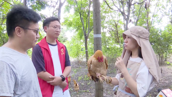 在新街鎮家庭農場,陳麗君正在用青飼料飼養土雞。她是一名90后,熱愛航拍和攝影。兩年前,她在航拍時發現了這片林地,于是決定因地制宜,發展林下養雞產業。“2023年,農場銷售了5萬多只土雞苗和3萬多只成雞,以及10多萬枚雞蛋,年收入超過100萬元。同時,通過土地流轉、托養寄養、訂單銷售和提供就業等方式,帶動了周邊居民的增收。”陳麗君介紹,農場堅持全生態養殖的理念,種梨和養雞相結合,實現了循環發展。“ππ農場是一個載體,下面有四條產業線。8月份通過直播銷售了大約20萬元的產品。”陳麗君說,農場的發展得到了多方的支持,這使得他們能夠取得現在的成績。目前,農場的產品在三大網絡電商平臺都有銷售。