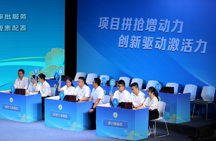 形式創新,開展技能大練兵 今年的“擂臺賽”除了傳統的項目建設打擂環節,還增設了招商業務比拼環節,18個板塊同臺“比武”、現場“過招”,圍繞招商引資政策法規、業務知識、專業技能、市情市況、產業基礎、發展現狀等內容,通過必答題、搶答題、風險題等形式,考查招商人員業務知識水平,發揮“以賽促學”作用,推進泰興全市招商隊伍綜合能力提升。
