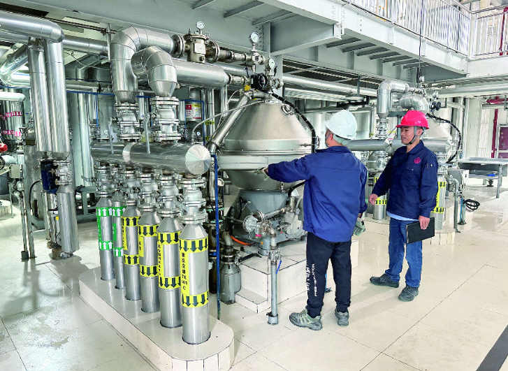 良龍糧油(泰興)有限公司生產(chǎn)運營總監(jiān)趙化寬表示:“我們引進了德國最先進的第五代離心機,其轉(zhuǎn)速高達每分鐘4700轉(zhuǎn)。在如此高速的運轉(zhuǎn)下,能夠充分地將油脂和油脂中的殘皂分離,從而降低油脂中的殘皂含量,保證油脂的品質(zhì)穩(wěn)定可靠。”