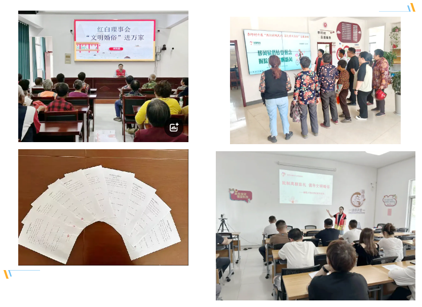 為了更有效地推進移風易俗,泰興市充分發揮微網格員的作用。在珊瑚鎮禎祥村,18名微網格員“變身”為紅白事服務員,他們深入網格、走訪農戶,包保移風易俗宣傳教育、紅白事指導服務和監督工作。這一舉措極大地帶動了鄉風民風的持續向善向好,禎祥村成為了移風易俗的典范。 同時,泰興市還積極開展形式多樣的移風易俗主題宣傳活動。截至目前,全市333個村(社區)都修訂完善了村規民約,制定了紅白喜事操辦標準,對操辦內容、宴請范圍、隨禮標準等事宜做出了具體規定。宣堡鎮郭寨村更是打造了全國首家村規民約實踐基地,通過制定移風易俗“紅8條”“白8條”,持續開展教育實踐活動,讓婚俗新風深入人心。