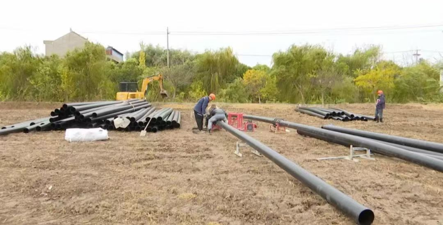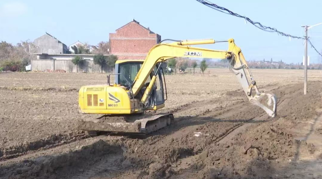 在虹橋鎮清水村高標準農田建設項目現場,大型挖掘機在平整土地,工人們正焊接節水管網。目前,該村200畝的高標準農田已初見雛形,項目建成后,將實現農田生產效益提升,促進群眾增收。