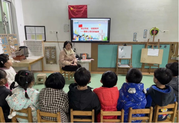 在泰興市河失鎮中心幼兒園,為紀念受難同胞,讓幼兒銘記歷史,激發孩子們感恩先輩、熱愛祖國、珍惜和平的愛國情懷,開展了“銘記歷史,童心向黨”的教育活動。志愿者和各班教師以談話、觀看圖片、視頻等形式回顧“南京大屠殺”歷史事件,讓孩子們了解英雄們用自己的生命捍衛國家的尊嚴和人民的利益,他們是我們民族的驕傲和脊梁。他們的事跡和奮斗精神,激勵我們每個人都要勇敢堅強,為國家做出貢獻。 |