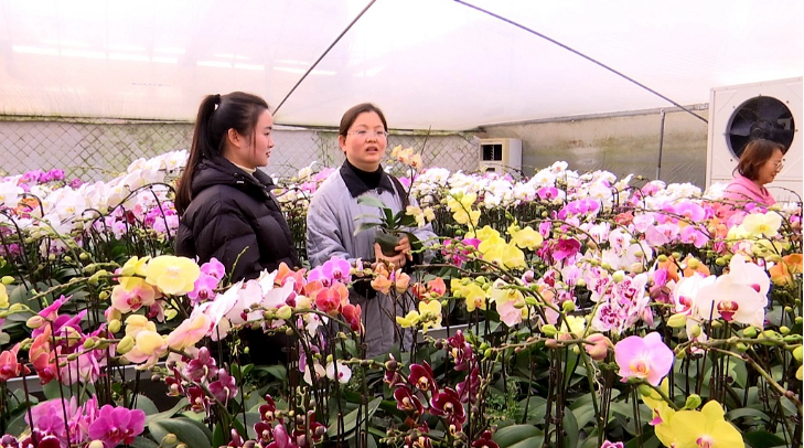 2024年12月21日上午,泰興市河失鎮綠地苗木市場的蘭泰花卉種植基地內,蝴蝶蘭生長旺盛,姿態優雅。盛開的花朵宛如翩翩起舞的蝴蝶,在枝頭嬉戲。市民郭嬌艷是這里的?,她表示:“我們經常來這里選購蝴蝶蘭,擺放在家中既美觀又有觀賞價值,作為禮物送給親朋好友也非常合適。” 蝴蝶蘭因其花瓣酷似停留在花莖上的藍色蝴蝶而得名,被譽為“洋蘭皇后”。隨著品種的雜交和演變,蝴蝶蘭的色彩變得更加豐富,紅、紫、藍、黃等色彩斑斕。目前蝴蝶蘭的品種已超過600種,滿足了消費者多樣化的家居種植需求;ㄋ噹煆埢劢榻B:“我手中的這盆花名為‘光芒’,因其花瓣如光芒般四射而得名。扦插時,由于花頭會延伸得很長,需要用鐵絲支撐,以起到襯托的作用。裝盆時,花朵平面朝向我們,以保持美觀。”