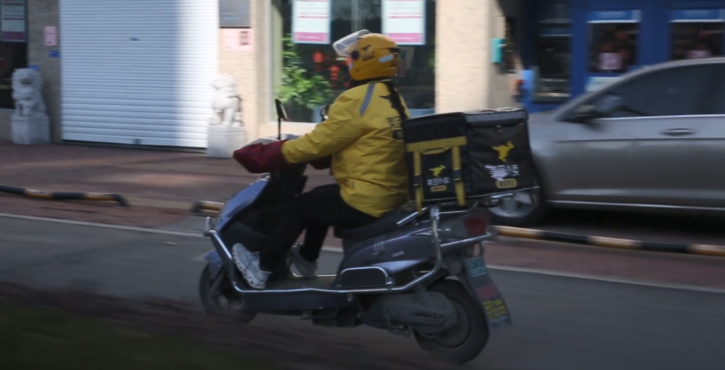 1月5日上午十點左右,午間用餐高峰將至,夏海兵熟練地檢查著電動車的電量、輪胎和剎車,確保一切準備就緒。圍巾、皮手套、加厚護膝、一輛電動車、兩個外賣箱,這些是他養活一家四口的全套裝備。今年是他送外賣的第三年,從早上九點上線到晚上十點半收工,每天的在線時長基本在十一至十二小時,多年的經驗讓他掌握了一套自己的節奏和方法,如合理規劃路線、利用碎片時間休息、錯峰吃飯等,因為爆單的時候,一忙就停不下來。