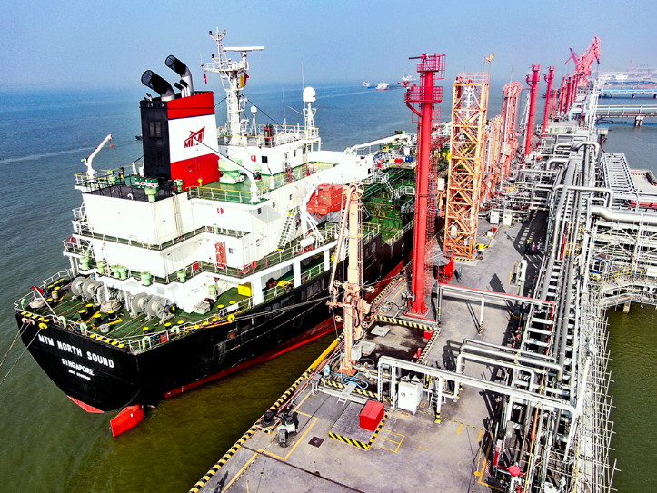 近期,新浦化學(泰興)有限公司萬噸級液體化工碼頭上也開始忙碌起來。隨著一艘外輪停靠泊位,碼頭上的裝卸臂便徐徐伸展開來,用“觸角”一樣的接頭去尋找船舶管道上相應的法蘭,自動對接上去,開始執(zhí)行這一船燒堿的裝載任務。