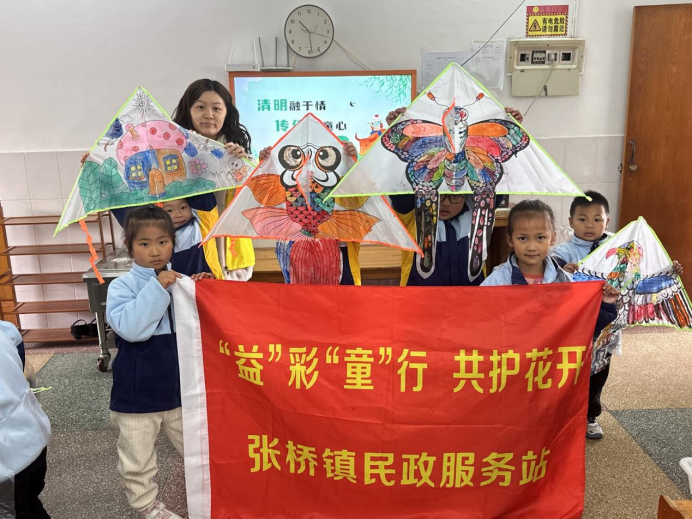 “益”彩“童”行話清明 共繪紙鳶護花開 ——張橋鎮民政服務站開展清明節主題融合活動
