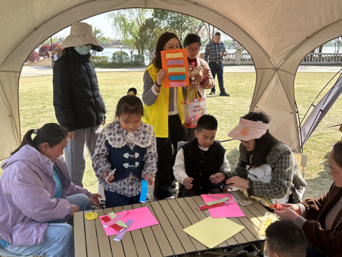 春風(fēng)送暖,文脈流芳。4月3日下午,張橋鎮(zhèn)民政服務(wù)站組織20余名兒童和家長(zhǎng)走進(jìn)香榭湖公園,開(kāi)展“香榭湖畔尋古跡·張橋地名探文脈”文化探源活動(dòng)。通過(guò)文化講解和手工創(chuàng)作,讓孩子們?cè)诤?/font>春色中觸摸家鄉(xiāng)歷史。 孩子們來(lái)到湖畔草坪,民政服務(wù)站工作人員用孩子們聽(tīng)得懂的語(yǔ)言講述張橋地名密碼。10歲的婷婷托著下巴問(wèn):“為什么叫張橋鎮(zhèn)呀?”“古代張姓人家在此架橋筑市,橋通人心,市聚煙火,這就是地名的溫度。”孩子們望著波光粼粼的湖面,仿佛穿越回千年前的驛道,感受歷史長(zhǎng)河的流淌。 在手工創(chuàng)作環(huán)節(jié),工作人員為大家分發(fā)彩色卡紙,引導(dǎo)孩子們將“橋”元素與心中張橋的景象巧妙結(jié)合,大家用稚嫩的小手粘貼出自己心目中的“小橋”。琳琳說(shuō):“我想象古代行人背著行囊從橋上走過(guò),橋下有烏篷船,這就是張橋的故事。”小鋒指著自己的彩虹橋:“張橋就像彩虹一樣多彩!”每件作品都承載著孩子們對(duì)家鄉(xiāng)的獨(dú)特理解。家長(zhǎng)們紛紛感慨:“孩子不僅記住了歷史,更學(xué)會(huì)了用發(fā)現(xiàn)的眼睛看家鄉(xiāng)!” 此次活動(dòng)以湖為媒、以史育人,通過(guò)可觸可感的文化體驗(yàn),在孩子們心中播撒下熱愛(ài)家鄉(xiāng)、傳承文脈的種子。未來(lái),張橋鎮(zhèn)民政服務(wù)站將持續(xù)探索“地名+教育”融合模式,讓歷史記憶成為滋養(yǎng)民心的精神甘露,讓每個(gè)孩子都成為優(yōu)秀傳統(tǒng)文化的傳承人。 |