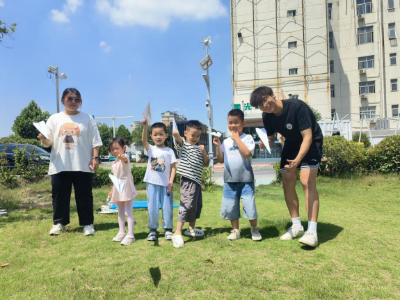 分區(qū)劃點講新知,戶外運動綻活力 在當(dāng)?shù)卣臀闯赡耆岁P(guān)愛協(xié)會的共同支持下,實踐團(tuán)于暑期赴泰興市的濟川街道北站社區(qū)、清水村、開綠村、騰興村和星光公益咖吧以及常熟市的琴南社區(qū)、錦荷社區(qū)、府東村、昆承村開展支教。7月7日實踐團(tuán)成員們進(jìn)行了開班儀式的宣講,主要形式為團(tuán)隊的發(fā)展歷程、開設(shè)課程以及隊員介紹。 暫別教室的四四方方,去擁抱風(fēng)的方向。最好的教室永遠(yuǎn)是戶外,擁抱自然沐浴陽光不僅能放松心情,還能讓心靈得到安撫。戶外運動課上,各個點位的成員帶著孩子們腳步踏過草地,指尖沾染上陽光的溫度,呼吸間滿是草木的清新,汗水滴落的聲音與歡笑撞個滿懷。每一次奔跑、跳躍、探索,都是身體與自然的對話,是勇氣和成長的證明。