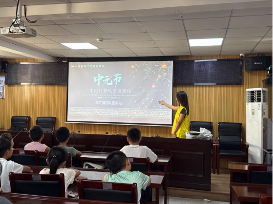為弘揚中華優秀傳統文化,倡導文明祭祀新風尚,近日,濱江民政服務站聯合中港村組織開展了"中元節-移風易俗宣傳"主題教育活動。活動通過多媒體教學、互動討論等形式,讓孩子們深入了解中元節的文化內涵,樹立環保祭祀理念。 在主題班會上,工作人員精心準備了圖文并茂的PPT課件,以生動有趣的方式向孩子們講解中元節的起源與發展。課件通過時間軸展示,將這一傳統節日從古代"秋嘗祭祖"到現代文明祭祀的演變過程娓娓道來。兒童在觀看中了解到,中元節不僅是祭奠先人的日子,更是傳承孝道文化的重要載體。 活動中,工作人員和孩子們共同觀看了文明祭祀宣傳視頻。視頻通過對比展示,讓孩子們直觀認識到傳統焚燒祭祀方式對環境造成的污染,以及可能引發的安全隱患。一位孩子在觀看后表示:"原來燒紙錢會產生這么多有害氣體,以后我要建議家人用鮮花來祭奠祖先。" "大家知道有哪些既環保又有意義的祭祀方式嗎?"在互動環節,工作人員的問題引發了孩子們的熱烈討論。孩子們踴躍發言,提出了網上祭掃、家庭追思會、種植紀念樹等多種綠色祭祀建議。鼓勵孩子們將學到的知識帶回家,帶動家人共同踐行文明祭祀。 本次活動的開展,既讓孩子們對中元節有了更深刻的認識,又培養了他們的環保意識和社會責任感,更在他們心中播下了文明祭祀的種子。濱江民政服務站將聯合各村社區開展傳統節日主題教育活動,通過"小手拉大手"的方式,推動移風易俗工作深入開展,讓傳統文化在現代文明中煥發新的生機與活力。