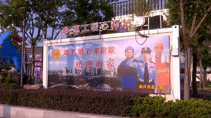 2020年,泰興市聚焦“八大群體”建會建家,組建“泰興市快遞(送餐)行業工會聯合會”,實施“圓夢筑家”六大行動,打造“快遞(送餐)小哥服務+樣板區”。在美團、順豐等企業新建3家職工小家,聯合美好、星地等超市共建8家“快遞小哥驛站”,泰興市總工會與泰興市公安局交通警察大隊聯合召開“快遞小哥一路通暢”座談會,解決停車難等難題,設立12個臨時停車點,把城區900余名快遞(外賣)小哥納入服務范圍。 2021年,文江路垃圾中轉站、四牌樓垃圾中轉站等4個“城市勞動者港灣”相繼啟用。“城市勞動者港灣”由泰興市總工會與泰興市城管局共建,是環衛工人等戶外勞動者的“歇腳地”,內配桌椅、空調、冰箱、微波爐、擦鞋機、雨傘雨衣、應急藥箱等,實現“冷可取暖、熱可納涼、渴可喝水、累可歇腳、傷可用藥”。鬧中取靜的“港灣”也是“城市書房”,配有文學社科、文教科技、少兒生活等書刊,方便市民閱讀,提升文化品質。同時,港灣還是紅色文化“傳播點”,長征精神、沂蒙精神、延安精神等紅色圖展醒目呈現,讓戶外工作者和市民了解英雄事跡,接受黨史熏陶,打通黨史學習教育“最后一公里”。