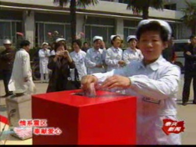 5月14日,市人民醫院黨辦負責人將首批2萬元捐款匯往四川省紅十字會。據了解,5月12日四川遭受震災以后,市人民醫院職工積極捐款,慷慨解囊,截止5月15日,已經累計捐款9萬多元。目前,各個科室的捐款還在源源不斷涌來。 5月15日上午,市第三人民醫院開展“天災無情人有情”捐助活動,早晨還不到七點半,全院的干部職工就已經全部到崗,主動排隊,依次向災區捐獻了自己的一片愛心。在不到半個小時的時間里,三院共捐款15000元。院領導表示,他們將盡快把這筆錢送達災區。