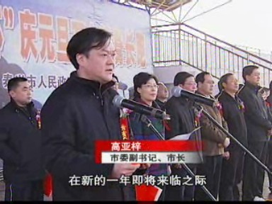 市委副書記、市長高亞梓在啟動儀式上致詞。他說:“在新的一年即將來臨之際,我們相聚在這里,舉行泰興市2009年‘洋河·藍色經典杯’慶元旦萬人健身長跑活動。首先,我代表市委、市人大、市政府、市政協,向參加今天長跑活動的同志們、同學們致以新年的問候,并借此機會向全市人民拜年,祝全市人民新年愉快、身體健康、生活美滿、闔家幸福!