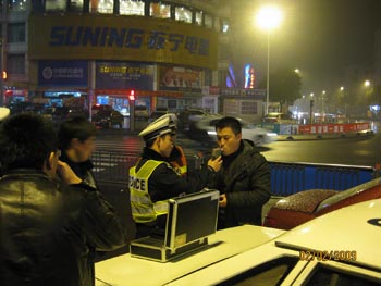 據交巡警部門統計,今年春節長假期間,泰興市因酒后駕車引發的事故占所有事故的80%以上,肇事車輛多為小型汽車和二輪摩托車。為保障春節后道路交通安全,遏制重大事故多發的勢頭,泰興大隊針對節日期間酒后駕車引發交通事故多發的實際,自2月2日起,在全市范圍內繼續開展為期20天的酒后駕車專項整治行動。圖為整治活動現場。(廖志鋒)泰興公安交巡警大隊法宣科 黃新麗
