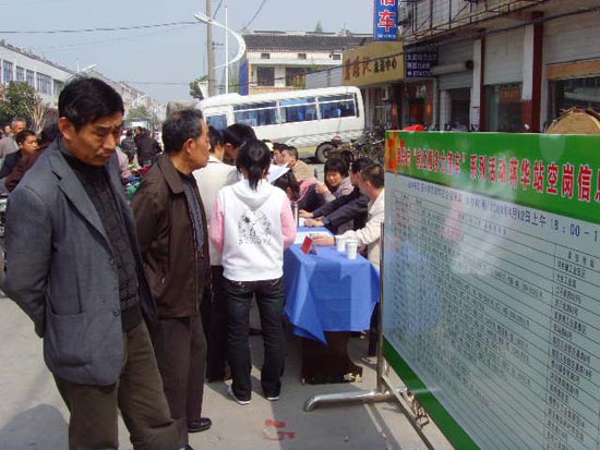 圖四為逛廟會的群眾在仔細(xì)觀看“空崗信息一覽表”。 (通訊員 徐益紅 趙建明 記者 孫紀(jì)剛)4月12日是蔣華鎮(zhèn)的傳統(tǒng)“廟會”。泰興市勞動和社會保障局將“創(chuàng)業(yè)就業(yè)服務(wù)大篷車”開進(jìn)了蔣華集鎮(zhèn),成為蔣華鎮(zhèn)傳統(tǒng)“廟會”上的一道亮麗的風(fēng)景線,吸引了上千的群眾前來咨詢、登記。 |