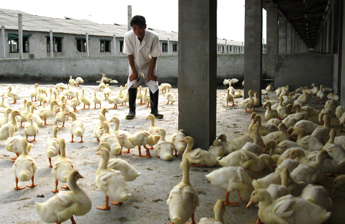 管理人員正觀察苗鴨長勢。