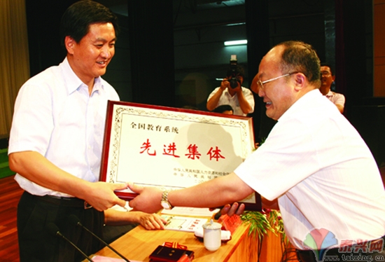 9月9日下午,在第25個(gè)教師節(jié)到來(lái)之際,我市召開(kāi)教師節(jié)慶祝表彰大會(huì),市領(lǐng)導(dǎo)張兆江、高亞梓、陳培才、周桂香、張春山以及來(lái)自全市的優(yōu)秀教育工作者代表出席了會(huì)議。 會(huì)議首先對(duì)先進(jìn)集體和先進(jìn)個(gè)人進(jìn)行了表彰。全國(guó)教育系統(tǒng)先進(jìn)集體洋思中學(xué)、全國(guó)優(yōu)秀教師趙明華以及4名省優(yōu)秀教育工作者、21名泰州市優(yōu)秀教育工作者、67名泰興市優(yōu)秀教育工作者分別上臺(tái)領(lǐng)取了獎(jiǎng)牌與證書(shū)。 市委書(shū)記張兆江向全體教師表示了節(jié)日的祝賀和問(wèn)候。他說(shuō):“首先,我謹(jǐn)代表市委、市人大、市政府、市政協(xié)向廣大教育工作者致以節(jié)日的問(wèn)候!向受到表彰的先進(jìn)集體和優(yōu)秀教育工作者表示熱烈的祝賀!向?yàn)榻逃聵I(yè)作出貢獻(xiàn)的離退休教師致以崇高的敬意!向關(guān)心、支持教育事業(yè)發(fā)展的各界人士表示衷心的感謝!” 隨后,慶祝第25個(gè)教師節(jié)文藝匯演拉開(kāi)帷幕。來(lái)自全市11所學(xué)校的教師表演了精彩的文藝節(jié)目。音詩(shī)畫(huà)、古箏合奏、舞蹈、大合唱、詩(shī)朗誦,表演形式多樣,演出現(xiàn)場(chǎng)高潮迭起,不僅展現(xiàn)了我市教師隊(duì)伍積極向上的精神風(fēng)貌,也表達(dá)了對(duì)祖國(guó)60華誕的美好祝福。演出在教育局機(jī)關(guān)的大合唱《祖國(guó)啊,我永遠(yuǎn)熱愛(ài)你》中落下帷幕。 會(huì)議召開(kāi)前,市領(lǐng)導(dǎo)還參觀了我市部分教師的優(yōu)秀書(shū)畫(huà)作品。 |