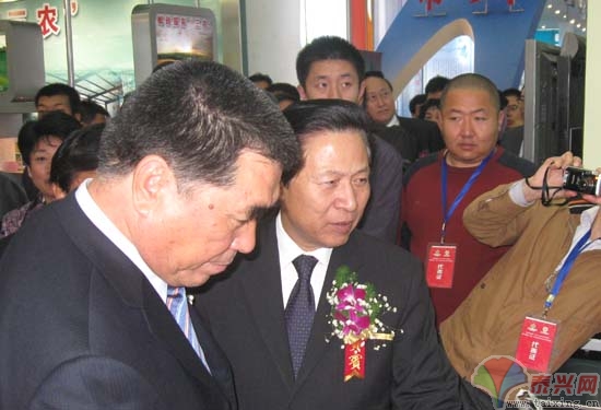 圖為江蘇省委書記梁保華來到由我市供銷合作社布置的農產品展區視察參展的特色優質農產品——“泰興大佛指”白果。