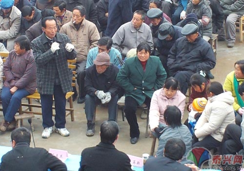 曲霞鎮丁橋村黨總支書記張建偉對村民的質詢進行答復