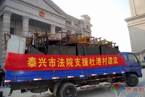 (特約記者 尹明生 胡玲)12月23日,為改善扶貧村根思鄉杜港村辦公條件,泰興法院精心組織,為扶貧村捐獻一批桌椅板凳等硬件設施,此舉受到杜港村干部、群眾的一致好評。