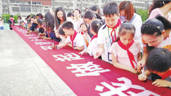 6月14日上午,市襟江小學舉行“小手拉大手,共建衛生城”主題宣傳啟動儀式;顒又校瑢W生代表宣讀創衛倡議書,家長代表和學生代表在“從我做起,積極行動,攜手共創國家衛生城市”橫幅上簽字。該校校長黃敬統說:“讓小學生參與這項活動,首先幫著爸爸媽媽搞好家庭衛生,同時要搞好社區的衛生,還要宣傳健康生活的理念,將創衛工作通過我們小朋友的宣傳行動推向一個新高度。”記者 王姝文 攝